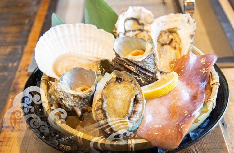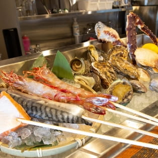 新鮮な魚介を、自分で焼き上げて味わう「浜焼き」。炭がはぜ、脂がじゅわっと滴るたびに、香ばしさが一気に立ちのぼります。まるで浜辺でBBQをしているかのような高揚感を、心斎橋のど真ん中で体験できます。おすすめは、旬の魚介を豪快に盛り込んだ「浜焼きセット」。囲炉裏を囲み、仲間と焼き、語らい、味わう。そのひとときこそが、この店のいちばんのごちそうです。